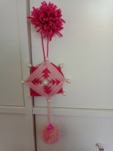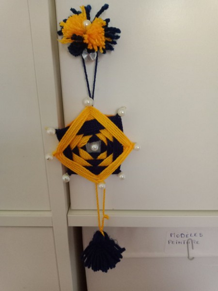 avec de la laine, des perles et des boutons (nous avons à l'association)